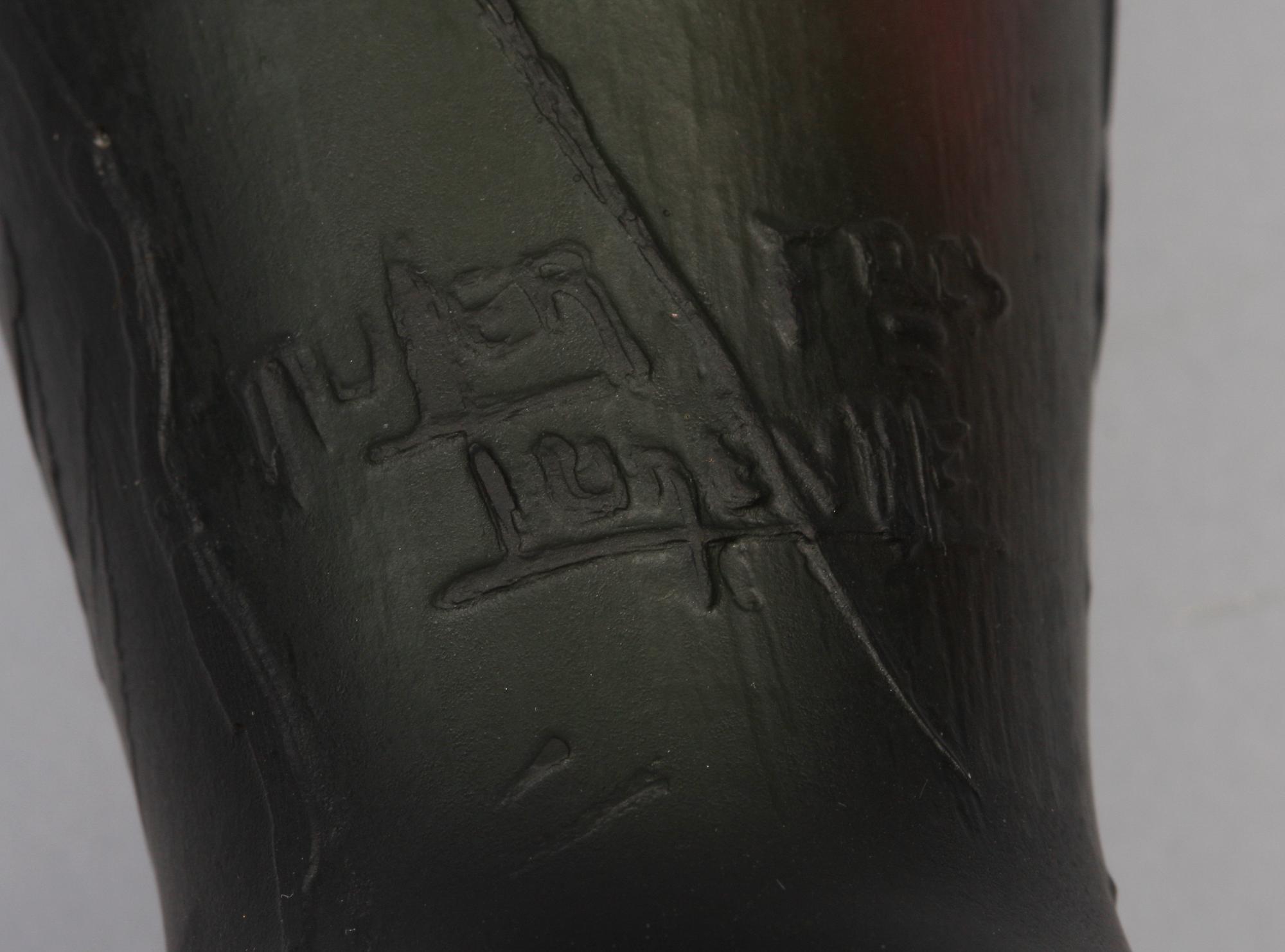 Dekor av fågel samt växter i grönt mot rosa botten. H 18.