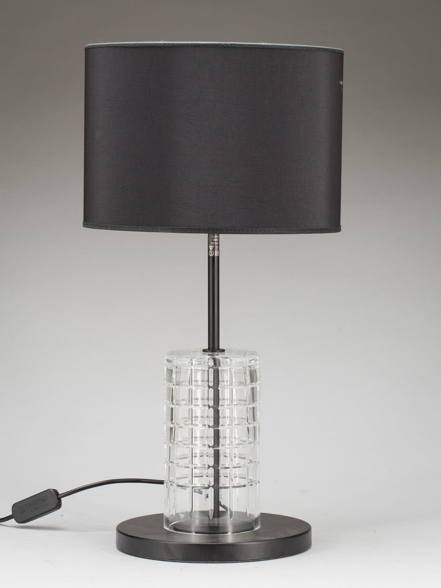 Glas med svartlackerd fot och skärm. Höjd 56 cm.