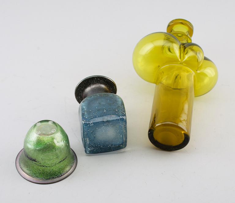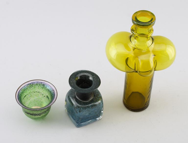VASER OCH SKÅL, 3 st, glas, Bertil Vallien, Boda, Åfors, signerade.