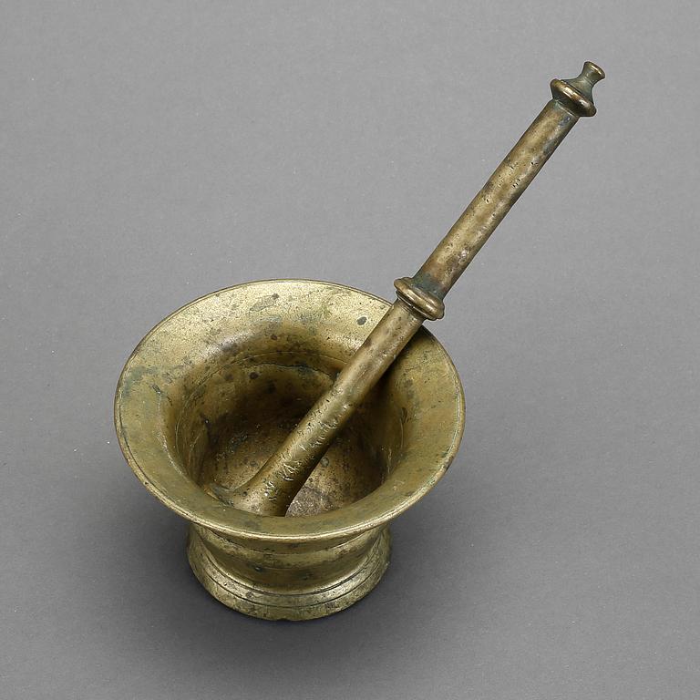 Rund form. Höjd ca 8,5 cm. Stötens längd ca 23,5 cm.