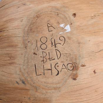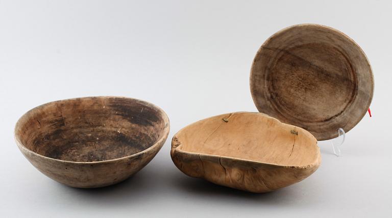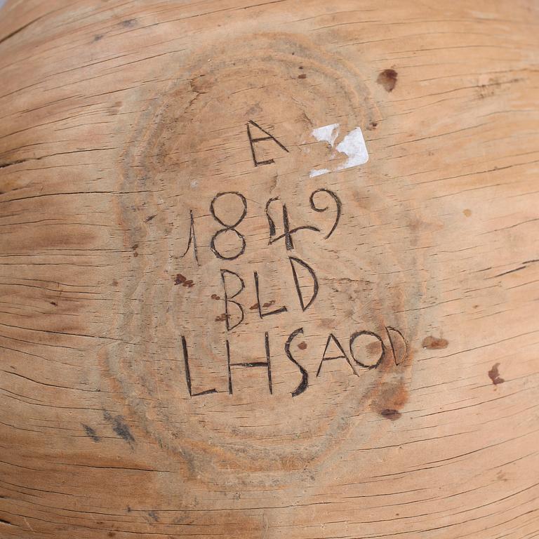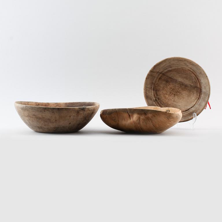 Furu. En märkt "KH 1813". En märkt "A 1849 BLD LHSAOD". Största skålens diameter ca 31. Fatets diameter ca 25 cm.