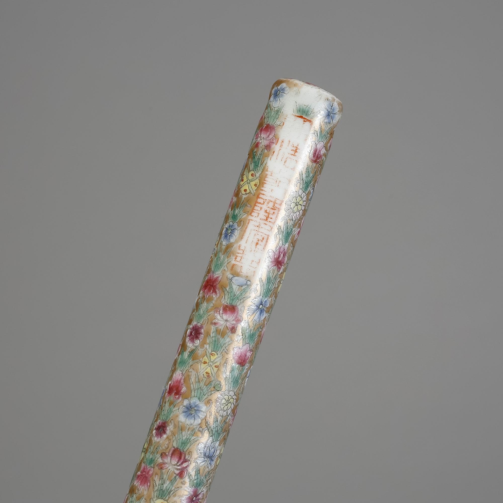 Dekor i famille rosefärger av millefiore. Längd 26 cm.