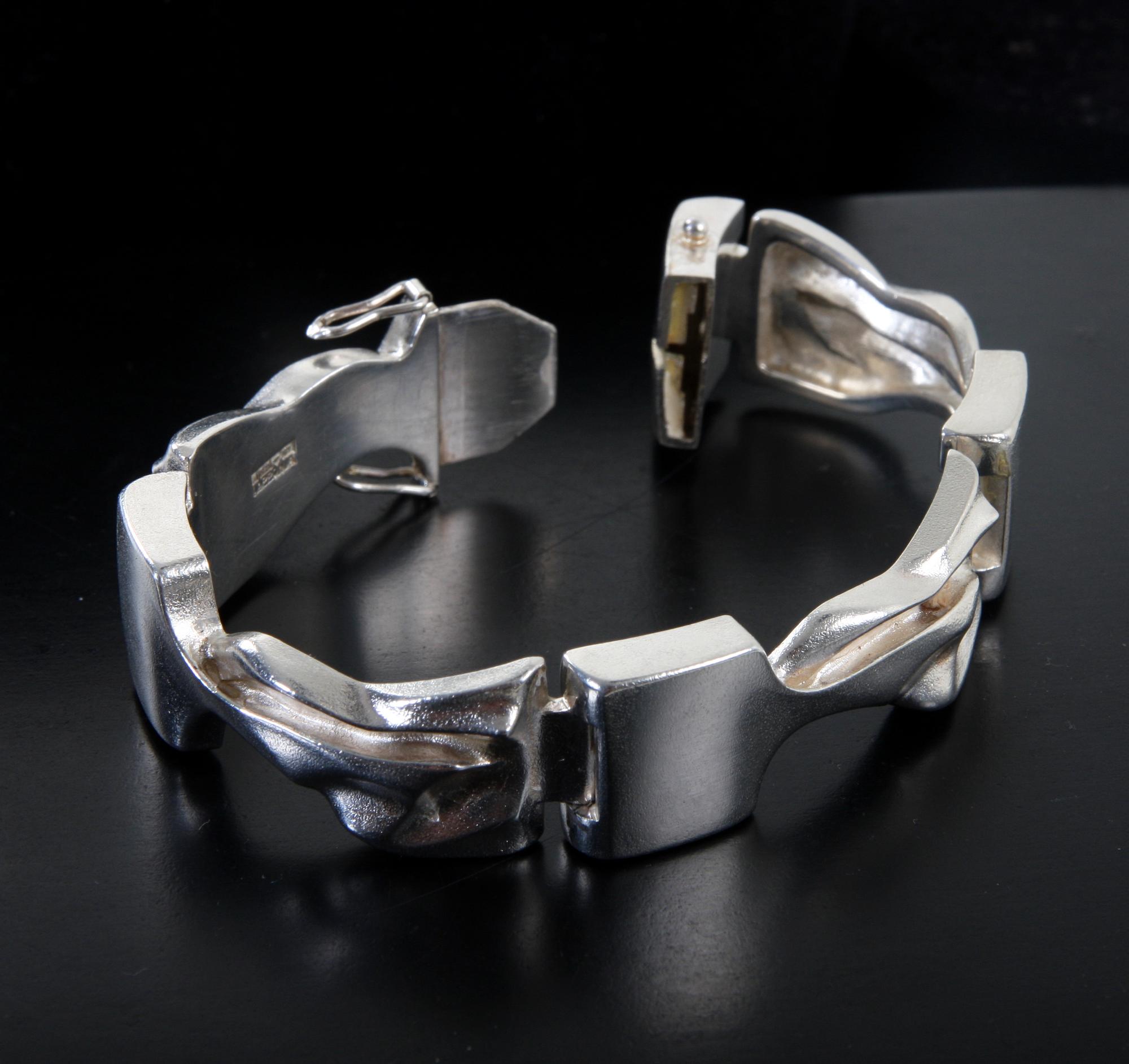 Halvstelt armband, l 18. Hängsmycke i stavkedja, l 72.