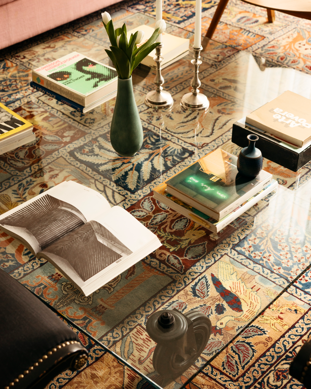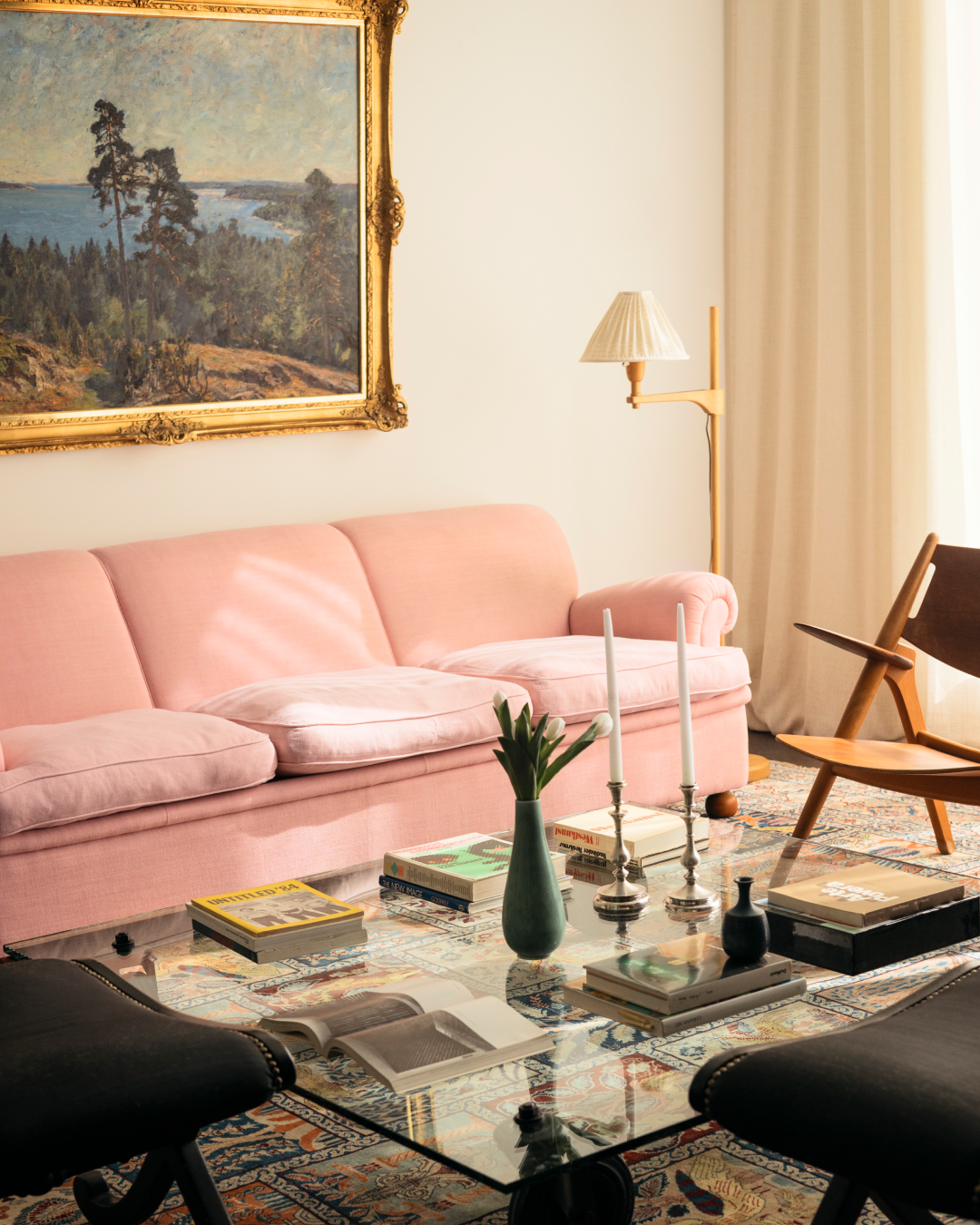Det kurerade urvalet rymmer både samtida design och äldre föremål. Rena linjer möter patina, och mjuka former bryter av mot det strama. Tillsammans skapas ett vardagsrum där varje föremål har sin plats, men också ingår i större sammanhang.